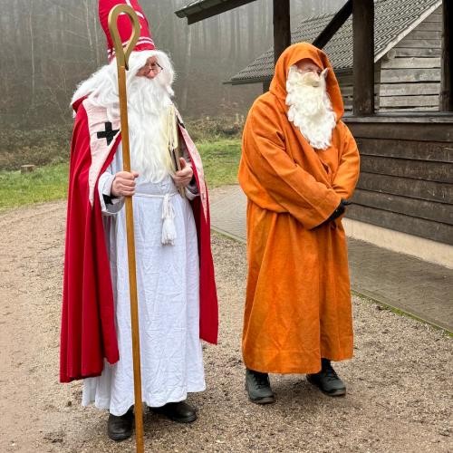 Das leise Klingeln einer Glocke deutete schon früh auf den Besuch des Nikolauses hin. An der Hauweghütte trafen die Kinder schließlich den heiligen Mann und seinen Begleiter Knecht Ruprecht, die jede Klasse herzlich begrüßten.
